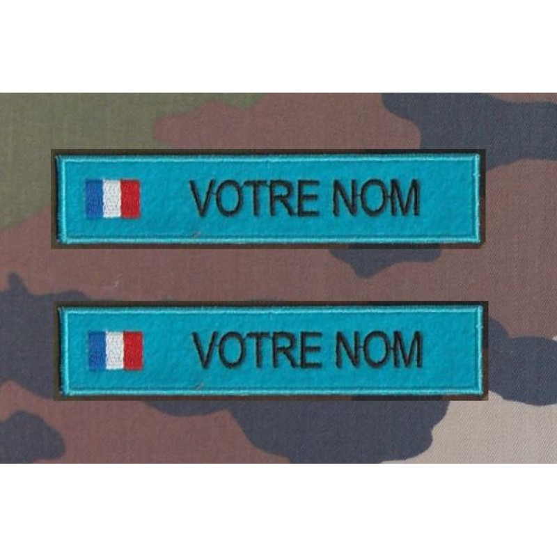 Bande patronymique sur feutre Bleu clair avec drapeau France ( par 2)